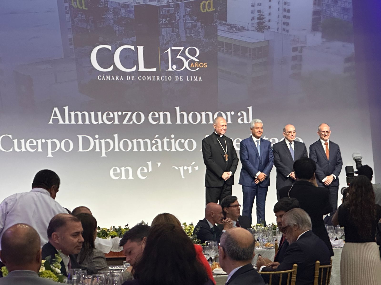 Lima, Perú, 22 de abril de 2026. La Embajada de Guatemala en el Perú asistió en Lima al almuerzo ofrecido al Cuerpo Diplomático en el marco del 138.º aniversario de la Cámara de Comercio de Lima (CCL), que reunió a diplomáticos acreditados, directivos de la CCL y representantes del sector empresarial peruano.