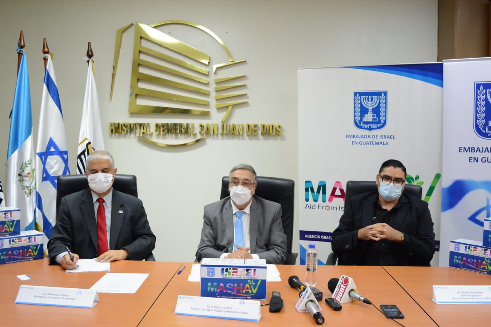 En la entrega del donativo participó el ministro de Salud Pública y Asistencia Social, Dr. Francisco Coma, el Embajador de Israel en Guatemala Señor Mattanya Aharon Cohen y el director Ejecutivo del Hospital San Juan de Dios, Dr. Gerardo Hernández.