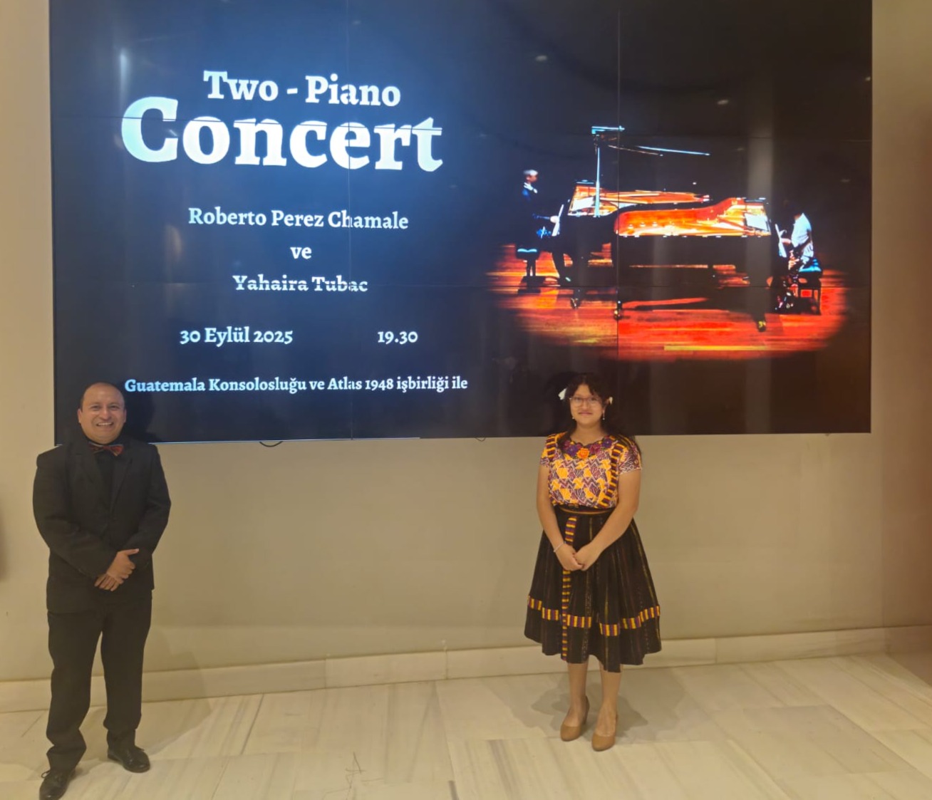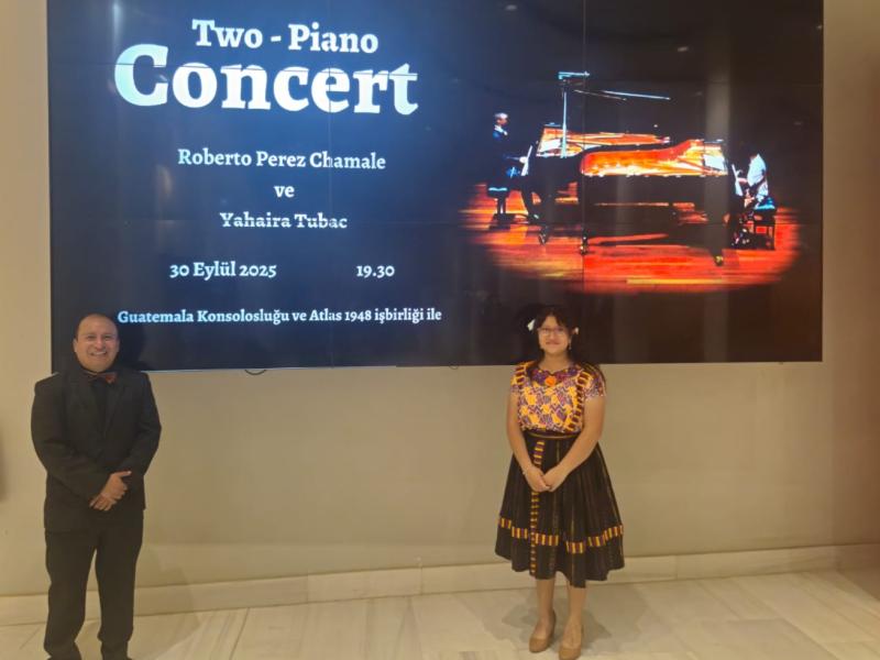 Ankara, Türkye, 1 de octubre de 2025. Como parte de la diplomacia cultural, la Embajada de Guatemala en Türkiye coordinó la presentación de los pianistas guatemaltecos Yahaira Tubac y Roberto Pérez Chamalé.