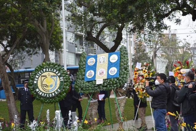 El acto cívico contó con la presencia de Manuel Álvarez, director de Centroamérica del Ministerio de Relaciones Exteriores del Perú; Luis Molina, alcalde de Miraflores, y miembros del Cuerpo Diplomático.