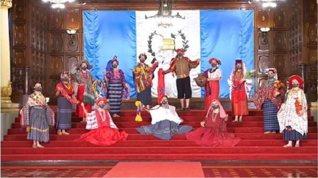 La Marimba de Conciertos del Inguat, uno de los conjuntos marimbísticos más representativos del país, con más de cuatro décadas de trayectoria, ofreció desde el Palacio Nacional de la Cultura un repertorio de melodías nacionales y luego acompañó el desfile de trajes regionales de Guatemala que representan una muestra de nuestra la cultura, de nuestros orígenes y el carácter pluricultural, multilingüe y multiétnico de la tierra del quetzal.