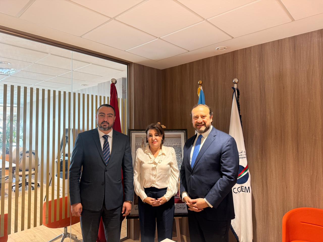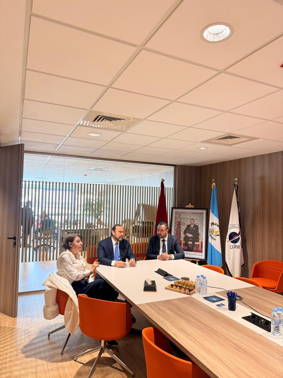 Tánger, Marruecos, 27 de marzo de 2026. El embajador de Guatemala en Marruecos, Marco Tulio Chicas, y la cónsul honoraria de Guatemala en Tánger, Rafia Benabdelouahb Said, se reunieron con Omar Kadaoui, presidente regional de la Confederación General de Empresas de Marruecos (CGEM, por sus siglas en francés) en la región Tánger-Tetuán-Alhucemas.