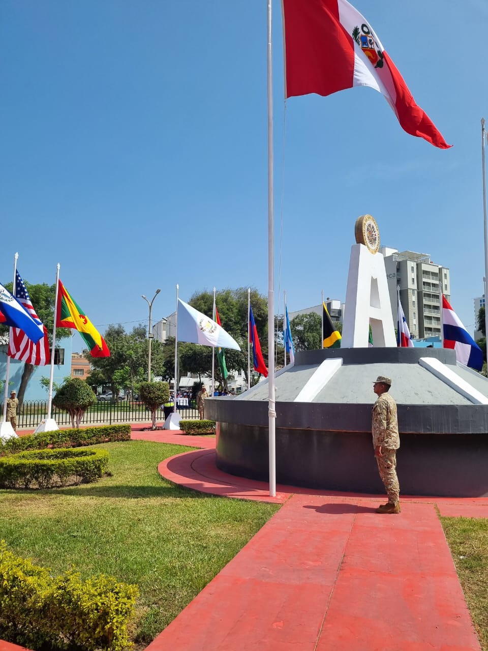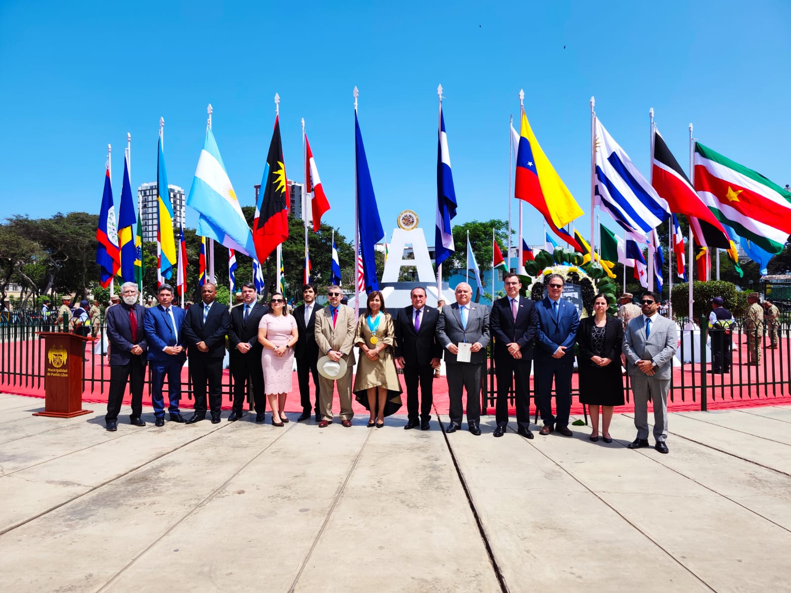 Lima, Perú, 14 de abril de 2026. El embajador Herbert Meneses participó en la ceremonia protocolar con motivo del Día de las Américas, desarrollada en el Parque de las Américas, en el distrito de Pueblo Libre.