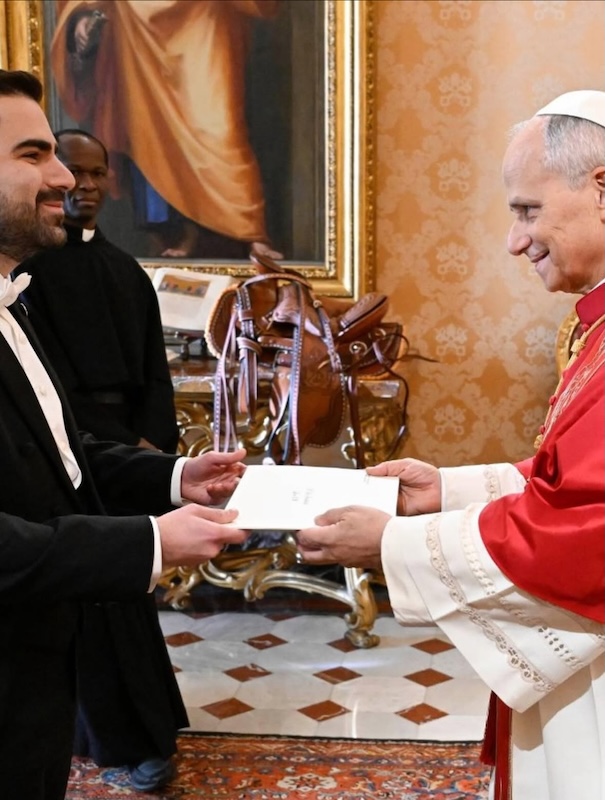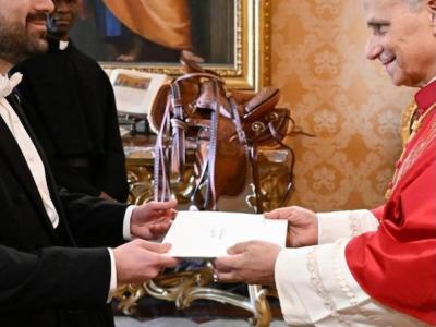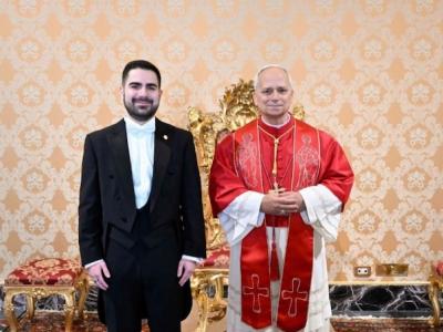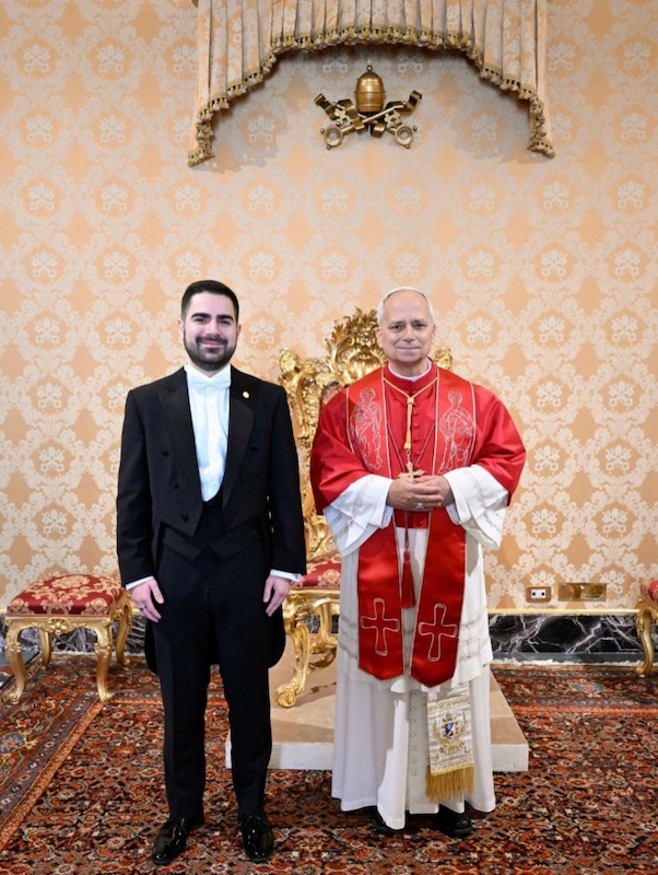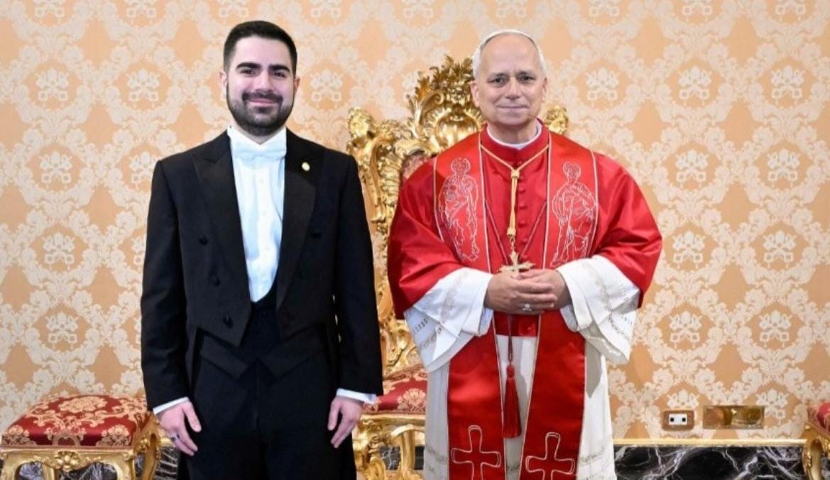 Ciudad del Vaticano, 29 de diciembre de 2025. Su Santidad el Papa León XIV recibió en ceremonia especial al Embajador Santiago Palomo Vila, quien presentó las Cartas Credenciales que lo acreditan como Embajador Extraordinario y Plenipotenciario de Guatemala ante la Santa Sede.