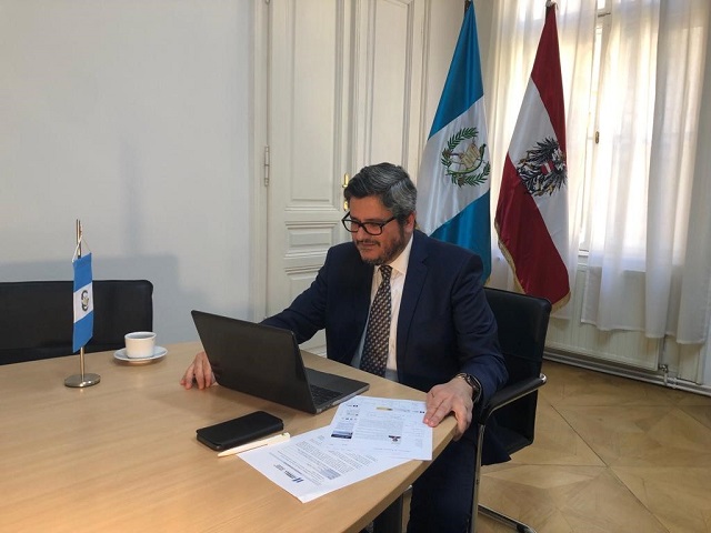 En la ceremonia, que se llevó a cabo de manera virtual debido a las medidas sanitarias del COVID-19, el diplomático guatemalteco trasladó el saludo al presidente Klaus Iohannis y al canciller Bodgan Aurescu, de parte del presidente Alejandro Giammattei Falla, del canciller Pedro Brolo Vila y del Pueblo de Guatemala.