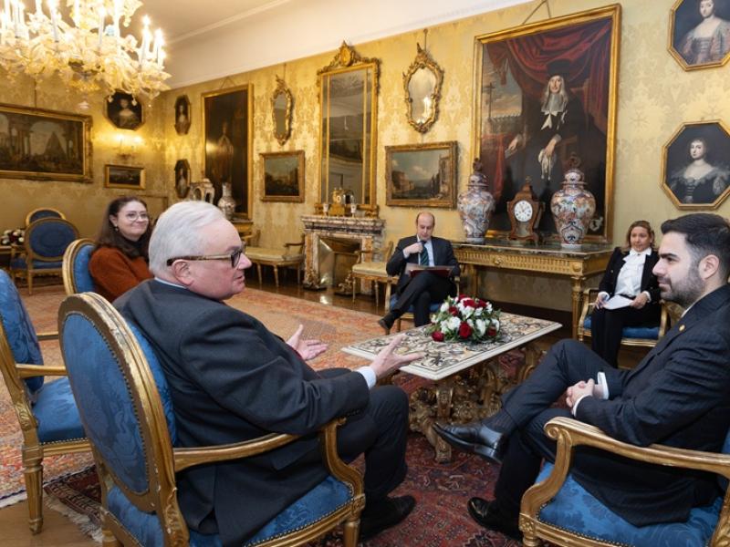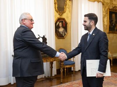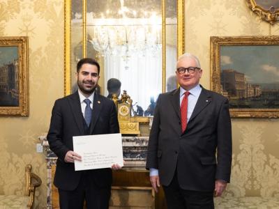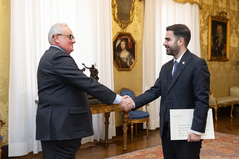 Roma, Italia, 26 de marzo de 2026. El embajador de Guatemala ante la Santa Sede, Santiago Palomo Vila, presentó las copias de estilo que lo acreditan como embajador concurrente de Guatemala ante la Soberana Orden de Malta, al secretario general de Asuntos Exteriores de la Orden de Malta, Giampaolo Cantini.