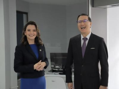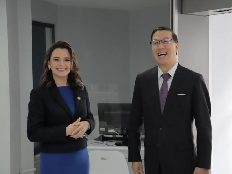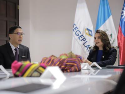 Guatemala, agosto de 2023. Durante una reunión de trabajo, Luz Keila Vilchez, secretaria general de Planificación y Programación de la Presidencia y Li-jey Tsao, excelentísimo embajador de la República de China (Taiwán), tuvieron la oportunidad de conversar respecto de la cooperación entre ambos países, así como del importante apoyo que el país asiático ofrece en materia educativa al Gobierno de Guatemala por medio del otorgamiento de becas.