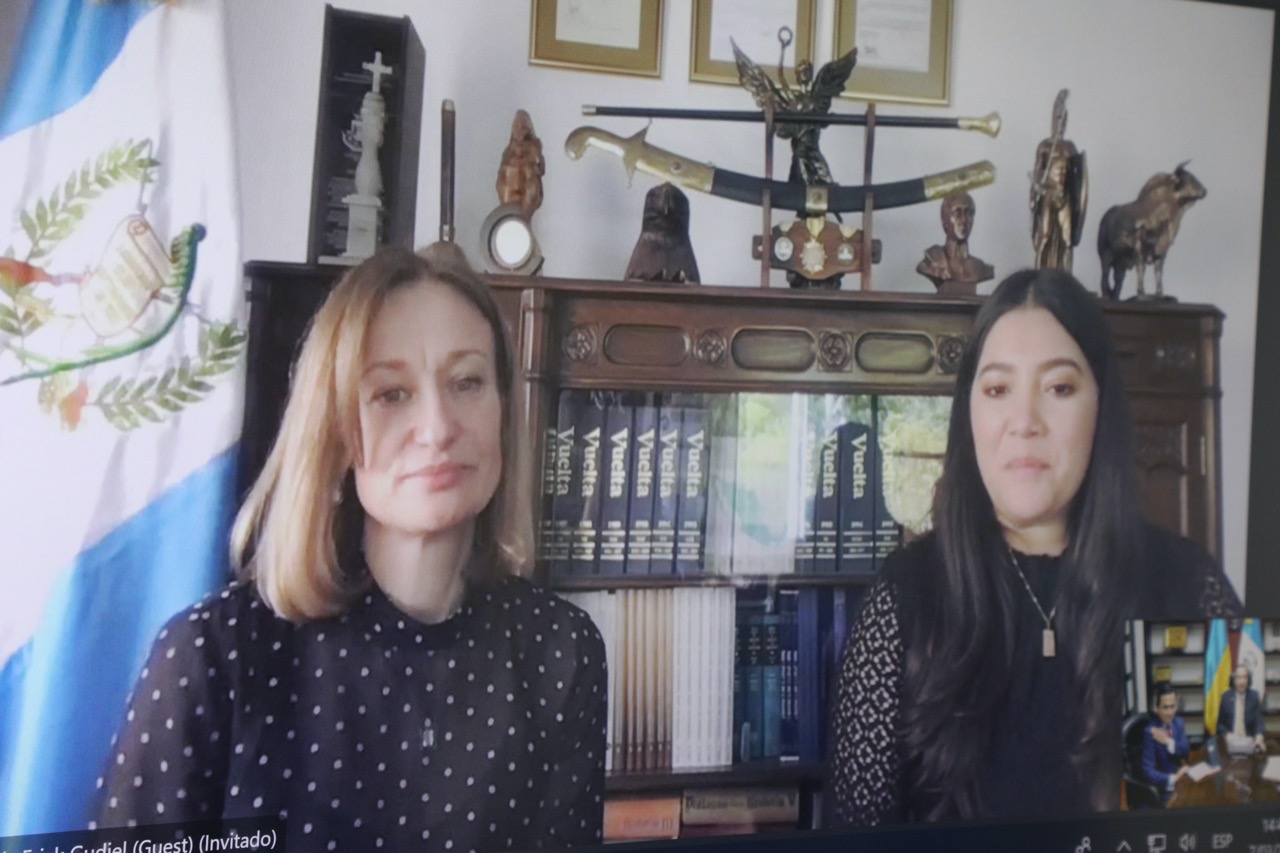 Guatemala, 7 de marzo de 2022. El ministro de Relaciones Exteriores, Mario Búcaro, recibió en formato virtual las Copias de Estilo de la embajadora de Ucrania en México, Oksana Dramaretska, como embajadora de Ucrania designada para Guatemala.