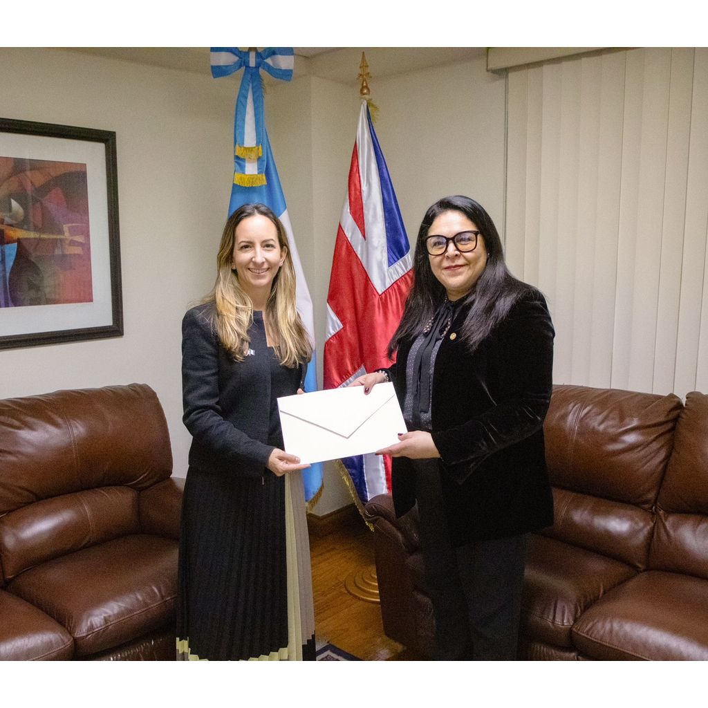 Guatemala, 29 de octubre de 2024. La Viceministra de Relaciones Exteriores Mónica Bolaños Pérez recibió este día en la sede de la Cancillería guatemalteca a la Excelentísima Señora Juliana Correa Whitfield, Embajadora designada del Reino Unido de Gran Bretaña e Irlanda del Norte.
