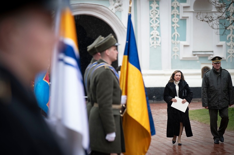 Kyiv, Ucrania, 24 de marzo de 2025. La Embajadora de Guatemala en Polonia, Sandra Noriega Urízar, presentó las cartas credenciales al Presidente de Ucrania, Volodímir Zelenski, que la acreditan como Embajadora concurrente ante ese Gobierno.