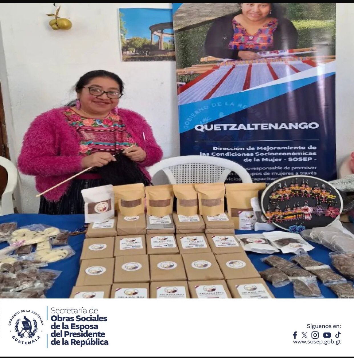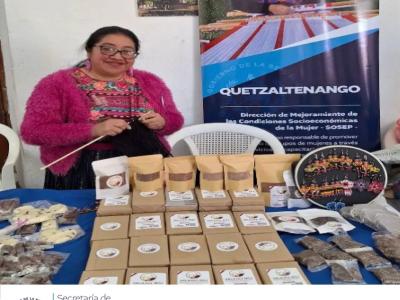 A través del Programa de Mejoramiento de las Condiciones Socioeconómicas de la Mujer, mujeres talentosas y emprendedoras de Quetzaltenango han tenido la oportunidad de presentar y comercializar productos hechos con sus propias manos. Entre ellos, podemos encontrar chocolate artesanal, bisutería, bordados, pintura en tela, dulces típicos, mermeladas y almíbares, que reflejan su creatividad, esfuerzo y dedicación.