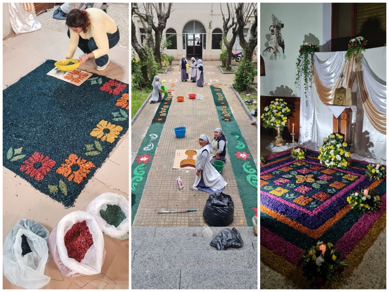 En Argentina, la Embajada de Guatemala acompañó a monjas que elaboraron alfombras tradicionales de la Semana Santa