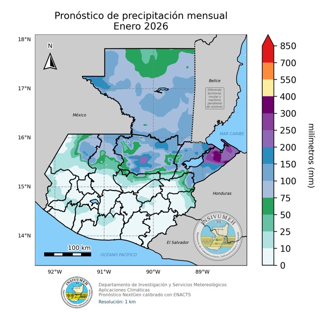El Instituto Nacional de Sismología, Vulcanología, Meteorología e Hidrología (INSVUMEH) ha emitido la perspectiva climática del mes de enero de 2026.