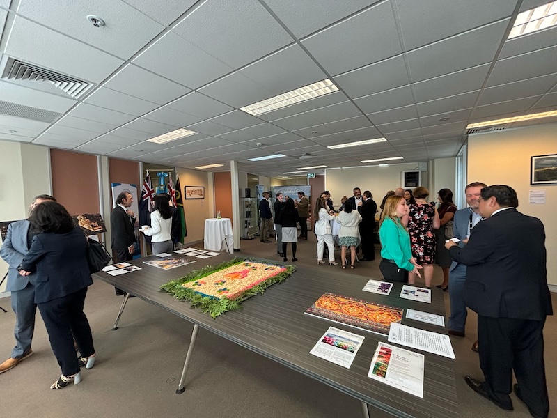 Canberra, Australia, 21 de abril de 2025. Como parte de las acciones de la diplomacia cultural de la Cancillería, la Embajada de Guatemala en Australia organizó recientemente el evento “Holy Week in Guatemala”, en el cual se tuvo la oportunidad de mostrar una exposición fotográfica y una pequeña alfombra elaborada por el personal de la Embajada.