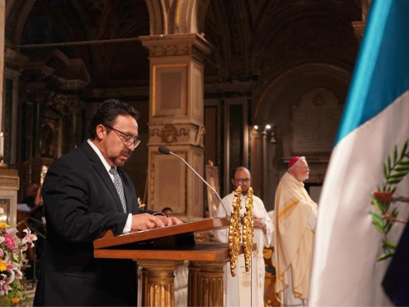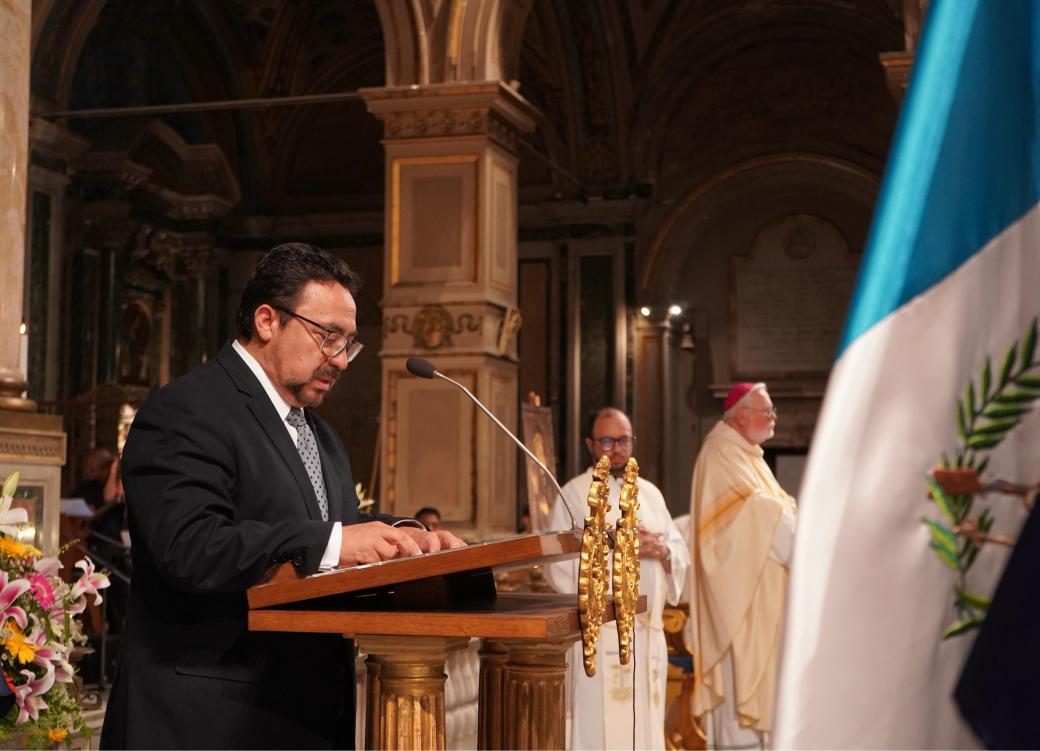 La Santa Misa fue concelebrada por Monseñor Francisco Díaz Tenza, Director de Centroamérica y el Caribe de la Secretaría de Estado; Monseñor José Brosel, Rector de la Iglesia Nacional Española de Santiago y Montserrat; sacerdotes guatemaltecos de la Arquidiócesis de Santiago de Guatemala y por sacerdotes centroamericanos. En la celebración eucarística en referencia participó el coro de las Hermanas de la Congregación guatemalteca “Marta y María”, quienes sirven en instituciones de la iglesia católica en Italia y en las nunciaturas de la Santa Sede.