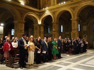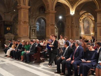 La celebración de independencia contó con la presencia del Cuerpo Diplomático acreditado ante la Santa Sede, autoridades eclesiásticas, así como autoridades de las Pontificias Universidades.