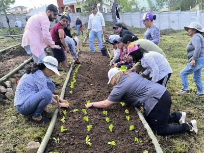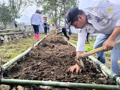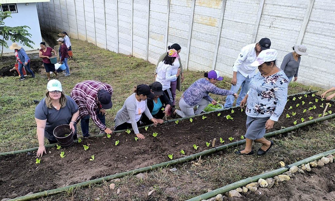 Seguidamente se inició con el trabajo de establecer los tablones y preparación del suelo, para realizar las primeras siembras con pilones de cilantro, lechuga, apio, remolacha, cebolla, pepino y cebollín. Asimismo, se implementará un huerto medicinal. Se tiene previsto que en dos semanas quede finalizado.