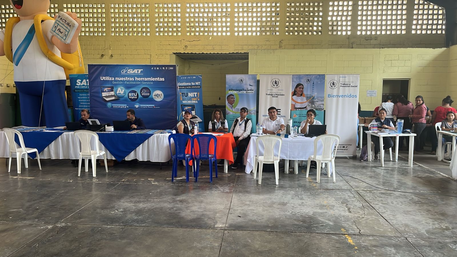 A esto se incluye la emisión de certificaciones de nacimiento, matrimonio, defunción y asesorías legales. La SAT apoya en la información sobre RTU, temas tributarios y actualización de documentos, entre otros servicios por parte de más instituciones.
