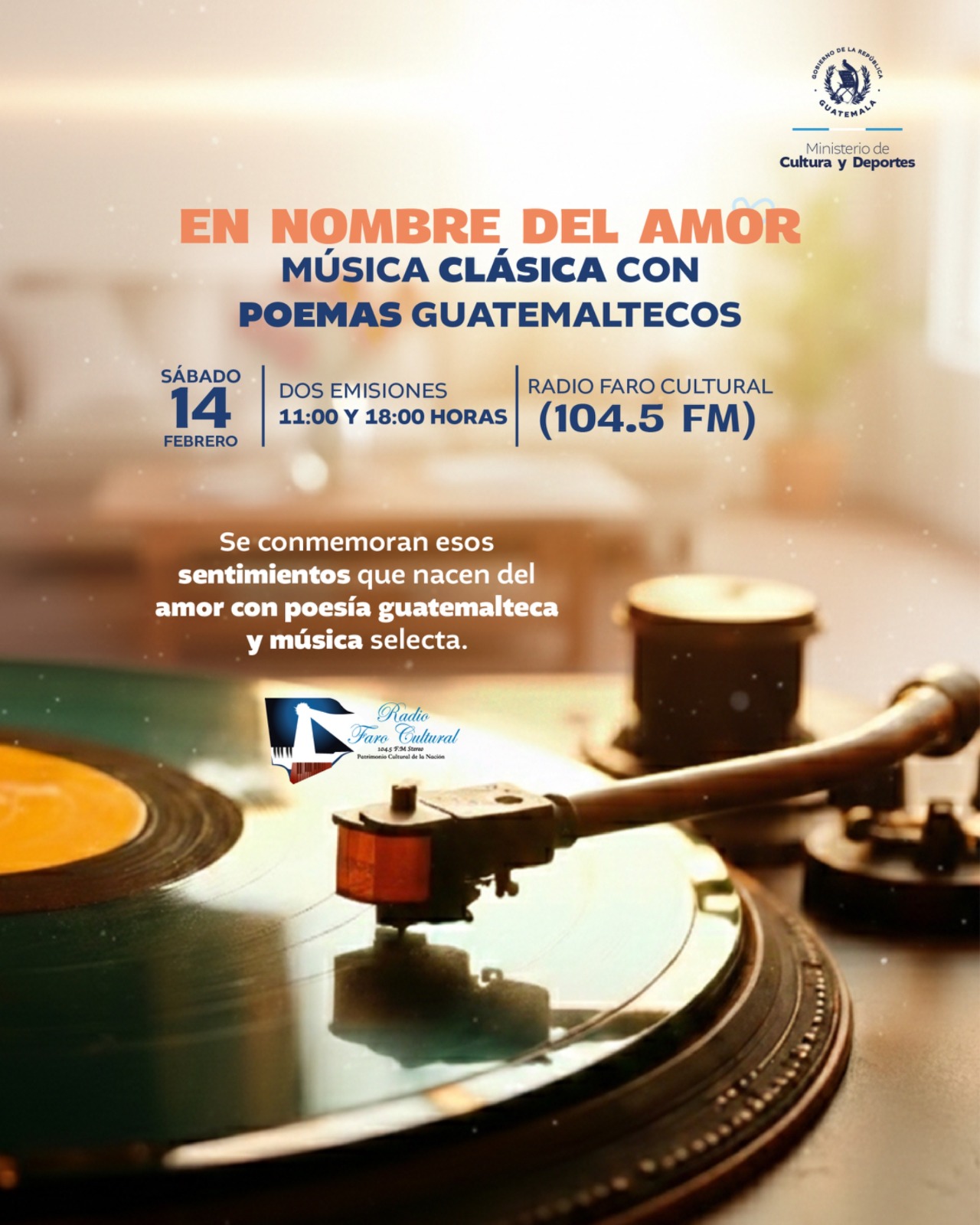 Podrás disfrutar de la lectura de poemas de autores guatemaltecos, acompañados de arias y fragmentos de óperas, así como piezas de piano y obras orquestales alusivas al amor, cuidadosamente seleccionadas para esta ocasión.