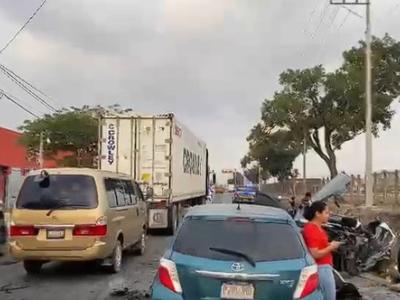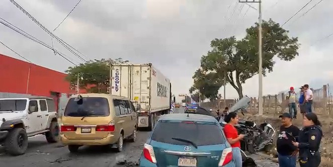 Brigadas de la Dirección General de Protección y Seguridad Vial (Provial) apoyan en regulación vehicular debido a una colisión que se produjo en el km. 127 de la ruta al Atlántico CA-9 Norte, en jurisdicción de Rio Hondo, Zacapa. Del lugar una persona fue trasladada a un centro asistencial