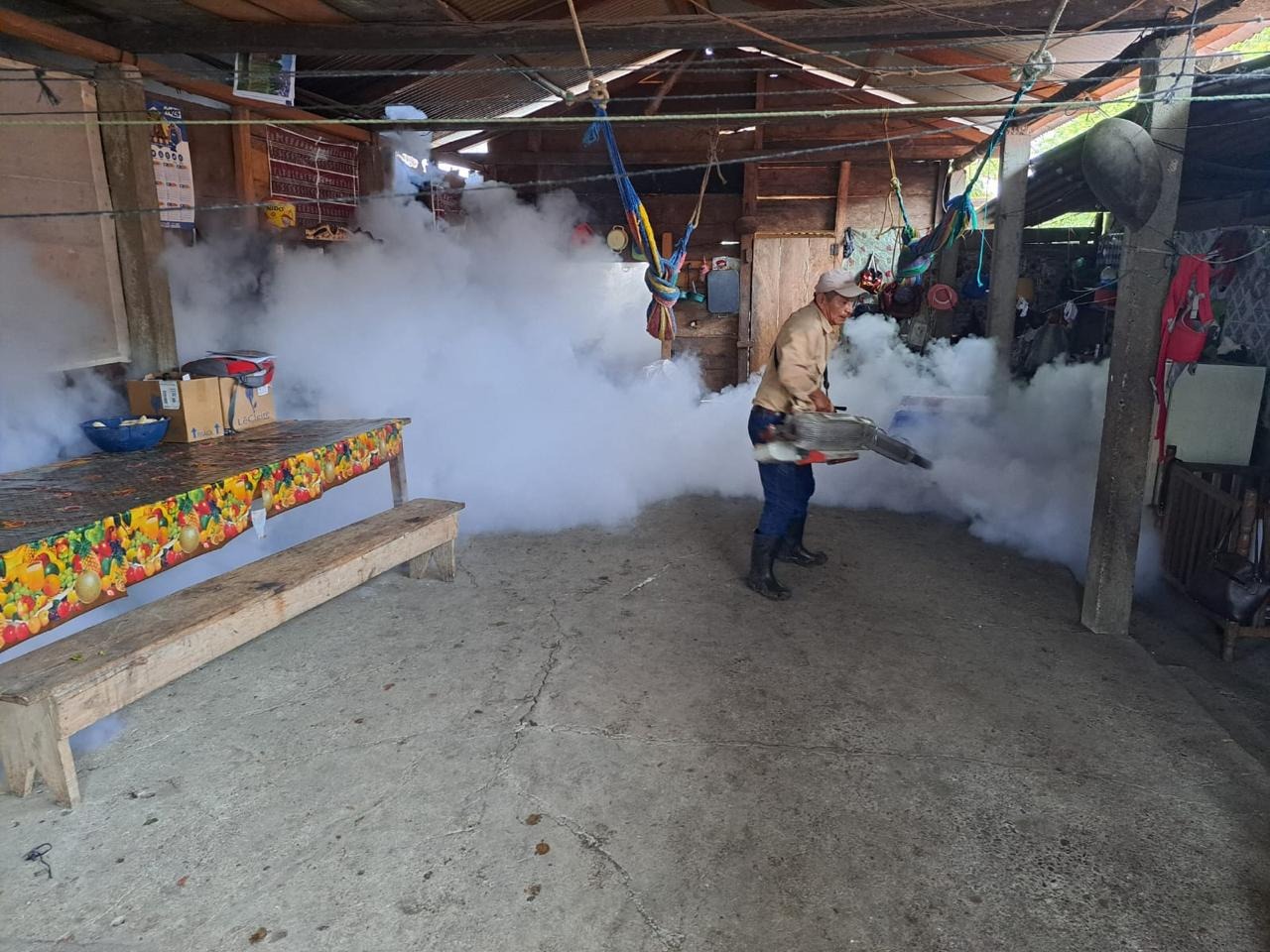 Para contrarrestar el aumento de casos de dengue, el personal salubrista de Sayaxché, Petén, continúa coordinando jornadas de nebulización para la eliminación del zancudo transmisor de esta enfermedad.