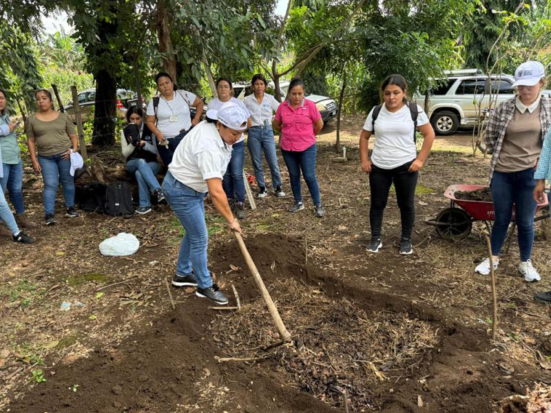 Las educadoras aprendieron a producir aboneras orgánicas o composteras, utilizando materiales como restos de cosechas, rastrojo, material verde, estiércol de ganado mayor seco, organismos de montaña, melaza y ceniza.