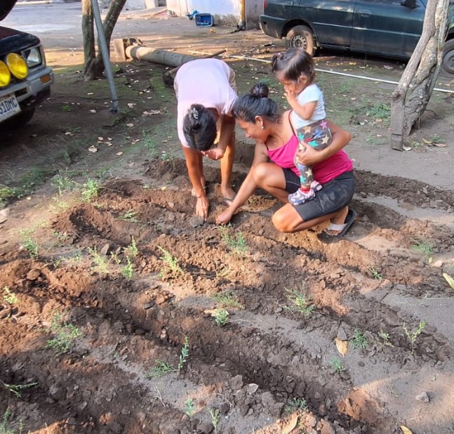 Posteriormente, las familias sembraron diversas hortalizas de alto valor nutricional, entre ellas tomate, rábano, zucchini, cilantro y hierbabuena. Durante la jornada, la nutricionista de Agricultura Sensible a la Nutrición, ofreció una charla educativa acerca de los principios de esta estrategia, los grupos de alimentos y el aporte nutritivo de las hortalizas que cosecharán en sus huertos.