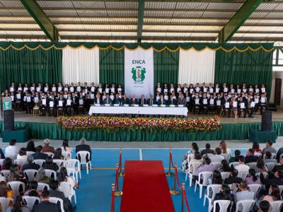 En cuanto a infraestructura, la ENCA realizó mejoras en sus instalaciones, incluyendo la implementación de un cuarto frío para el área de cocina, la adecuación de una casa de huéspedes y la instalación de una pantalla gigante en el auditorio.
