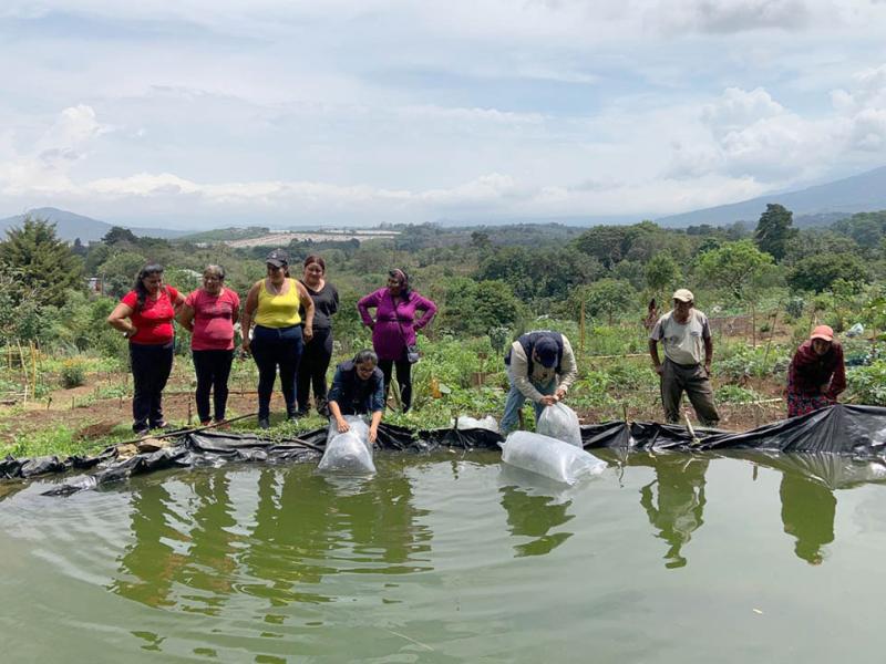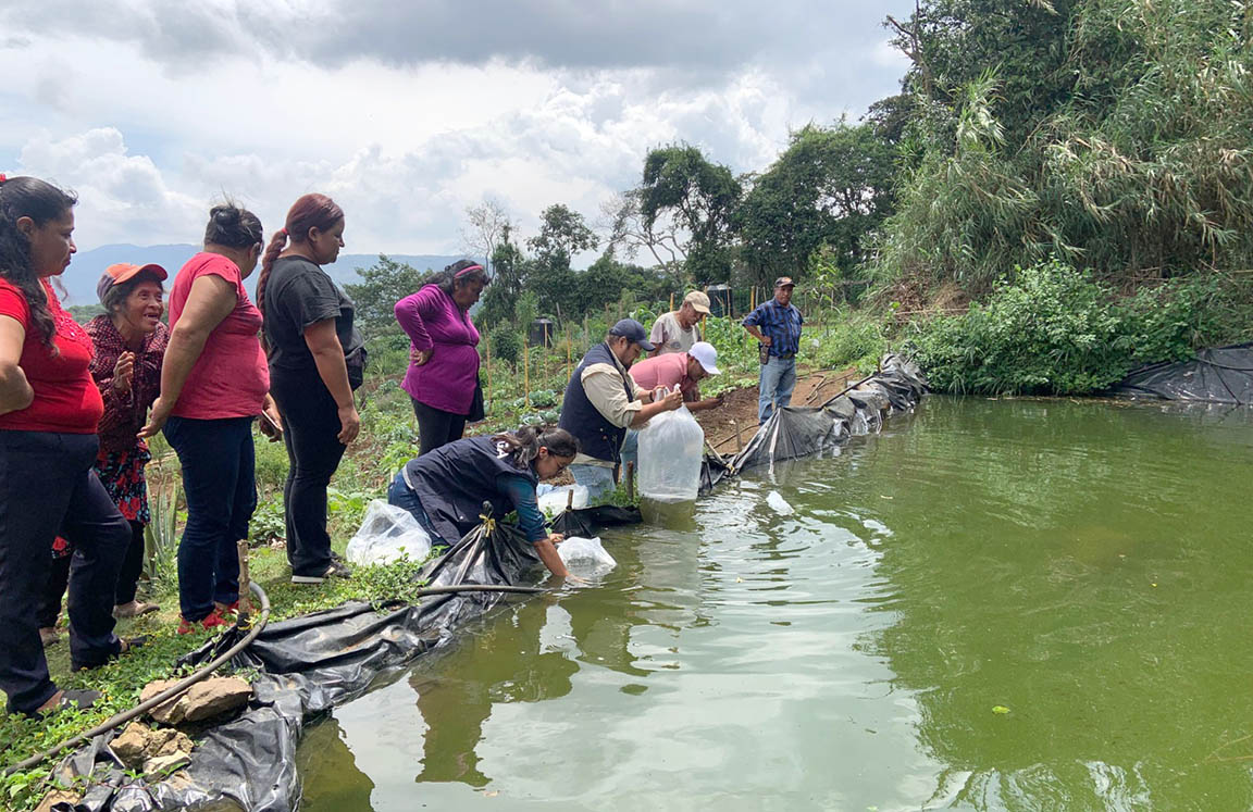 Entrega alevines de tilapia fortalece la producción del huerto comunitario en Fraijanes