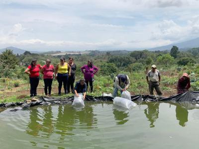Personal técnico de la Dirección de Desarrollo Pecuario, de la Dirección de Apoyo a la Producción Comunitaria de Alimentos (DAPCA), brindó asistencia técnica especializada relativa al manejo adecuado de los alevines, acondicionamiento del estanque y las recomendaciones para su mantenimiento. Ello permitirá a las familias beneficiarias diversificar sus medios de vida y contar con alimentos frescos de producción propia.