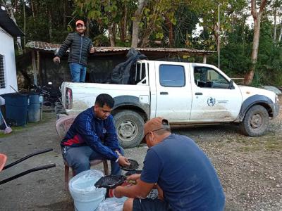 Familias productoras de Belén y Nuevo Amanecer, de los municipios San Benito y La Libertad, recibieron alevines para fortalecer la seguridad alimentaria y aumentar sus ingresos en Petén. En total, se distribuyeron 1050 alevines a los beneficiarios.
