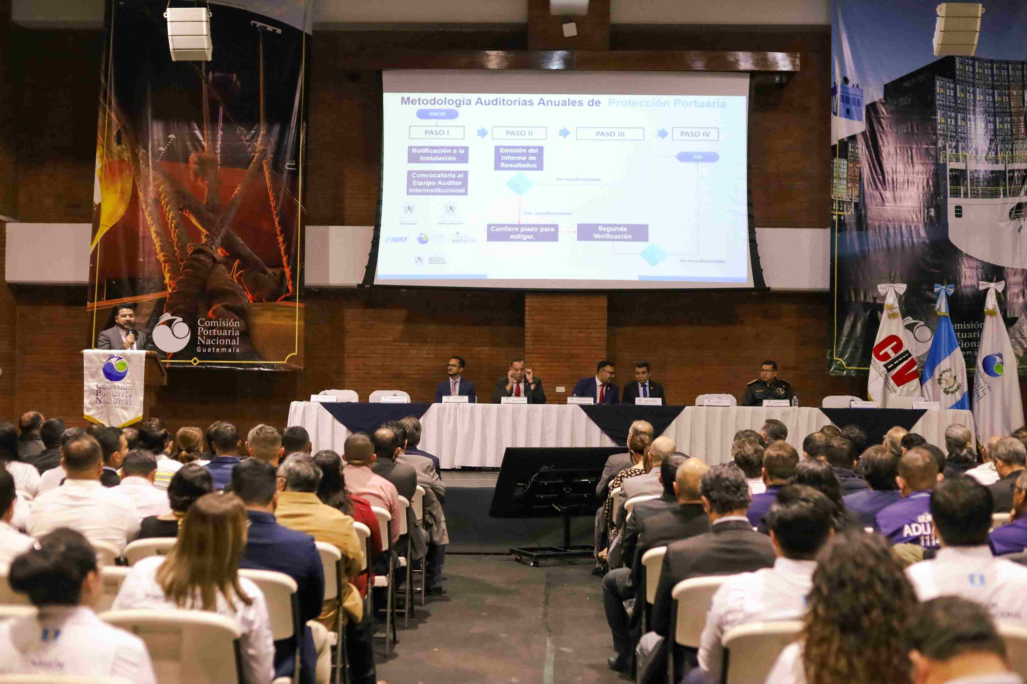 El proceso de auditoría, llevado a cabo por el Equipo Auditor Interinstitucional y coordinado por la CPN, contó con la participación del Ministerio de la Defensa Nacional, el Ministerio de Gobernación (MINGOB), el Ministerio de Agricultura, Ganadería y Alimentación (MAGA), la Superintendencia de Administración Tributaria (SAT) y el Instituto Guatemalteco de Migración (IGM). Esta evaluación rigurosa incluyó la revisión de registros, entrevistas, observación en campo, ejercicios y pruebas de equipos de protección, abarcando aspectos fundamentales como el control de acceso, las zonas restringidas, la manipulación de carga, la vigilancia de protección y la interfaz buque-puerto.