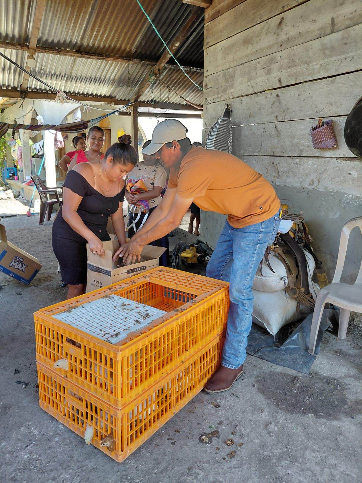 En el caserío Nuevo Porvenir, municipio de Santa Ana, la Agencia Municipal de Extensión Rural (AMER), del Ministerio de Agricultura, Ganadería y Alimentación (MAGA), entregó 200 gallinas ponedoras a 20 familias beneficiarias del programa de apoyo rural.
