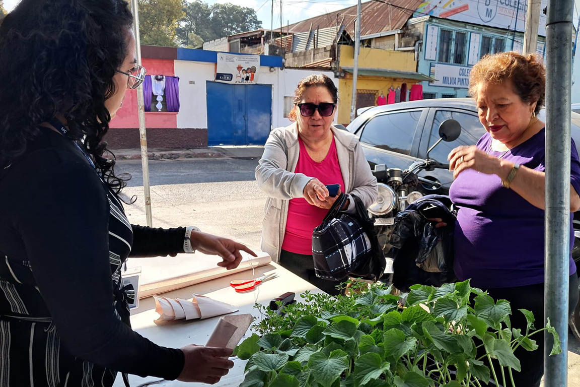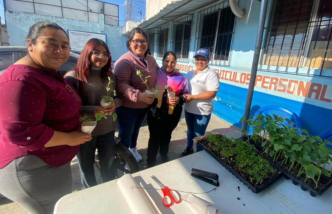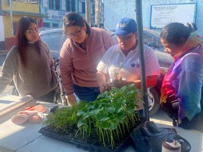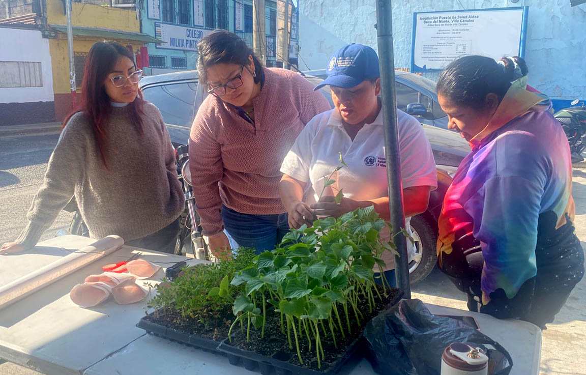 Durante el encuentro, el personal del MAGA entregó pilones de pepino y chipilín a los participantes, incentivando la creación de pequeños huertos en el hogar.