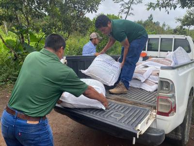 En total se distribuyeron veinte quintales de abono, beneficiando a cuatro productores de Melchor de Mencos y de Villa Hermosa, Poptún. Fueron distribuidos 50 sacos en cada uno de los municipios.