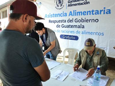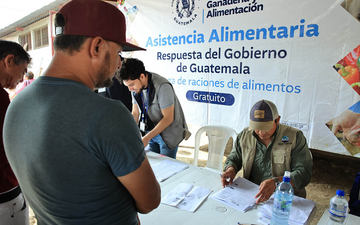 Posteriormente, los beneficiarios firman la planilla y entregan una copia de su Documento Personal de Identificación (DPI), en las mesas atendidas por instituciones que integran la Comisión Nacional de Seguridad Alimentaria y Nutricional (CONASAN), entre ellas los ministerios de Desarrollo Social (MIDES), así como Salud Pública y Asistencia Social (MSPAS), junto con la SESAN y el MAGA. Tras completar este proceso, reciben un ticket con el que pueden retirar sus alimentos.