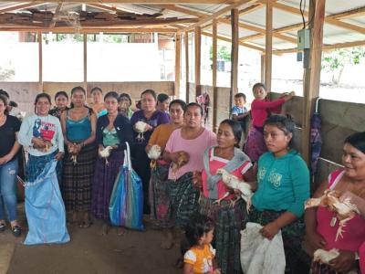 Se entregaron 250 aves mejoradas a mujeres de la comunidad San Pablo Chinajá, en el municipio de Poptún, Petén, acción del Ministerio de Agricultura, Ganadería y Alimentación (MAGA) que beneficia a 50 familias.