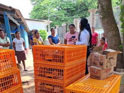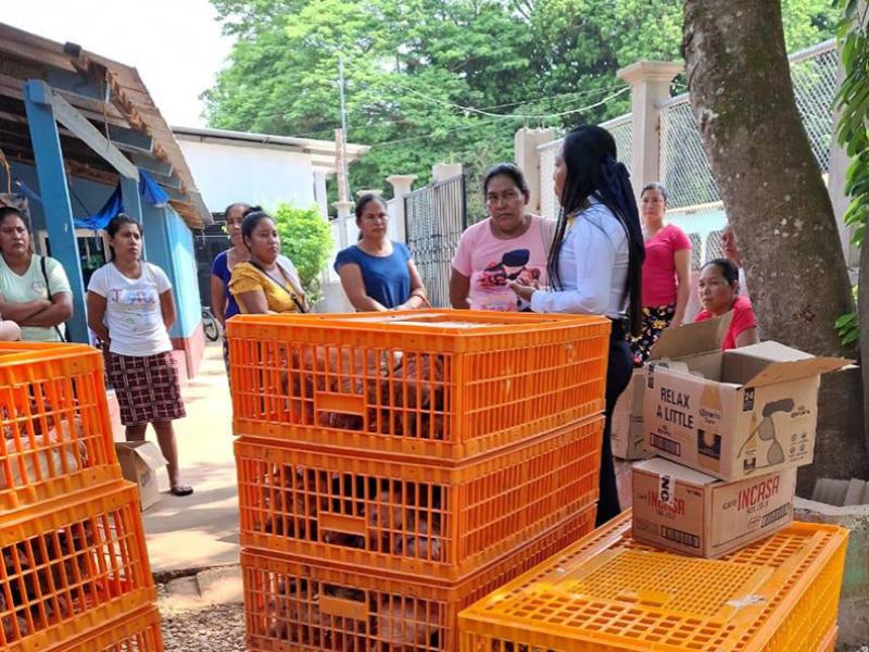 Un grupo de veintinueve familias de la aldea Palestina, del municipio de Las Cruces, Petén, fueron beneficiadas con la entrega de aves, hembra y machos, lo cual les permitirá construir su propio patrimonio aviar. La entrega se coordinó con la municipalidad de Las Cruces.