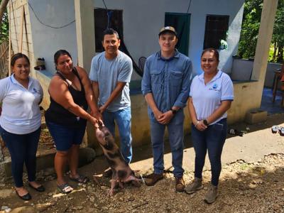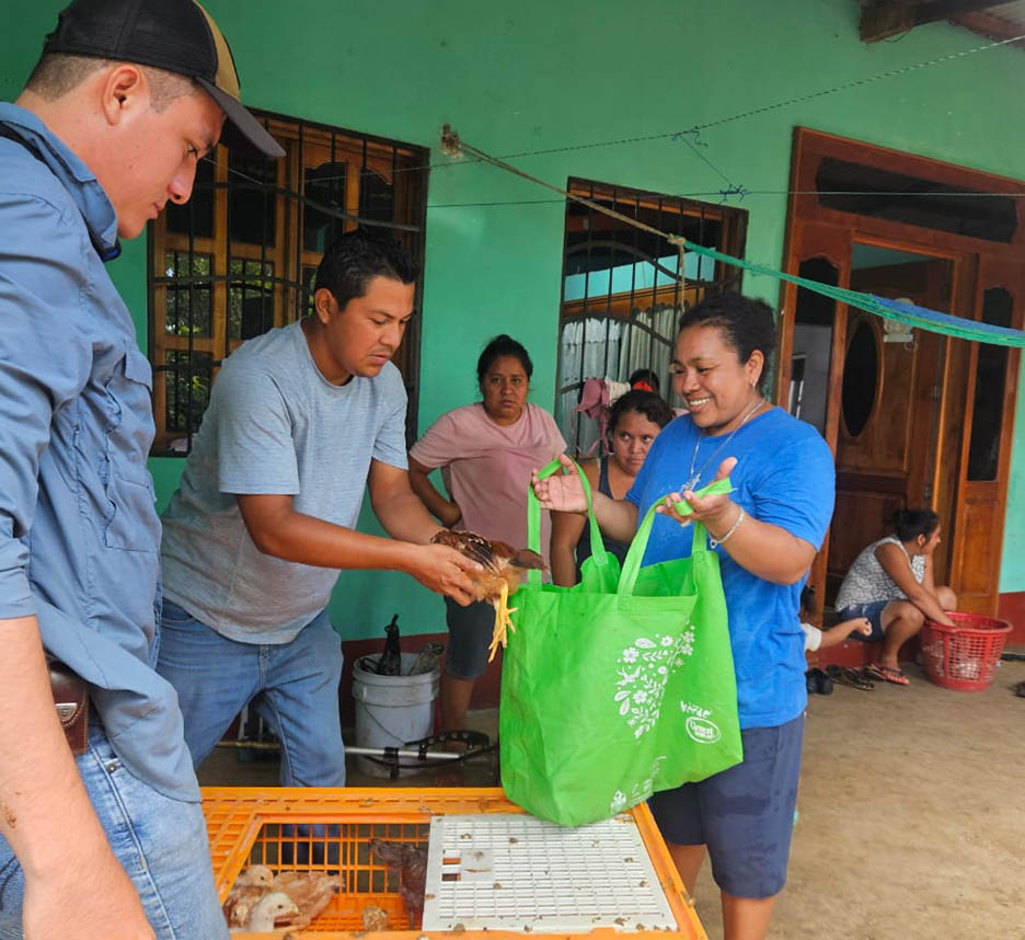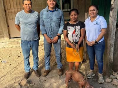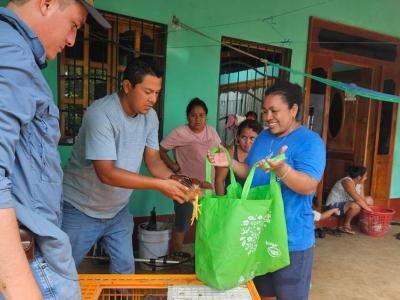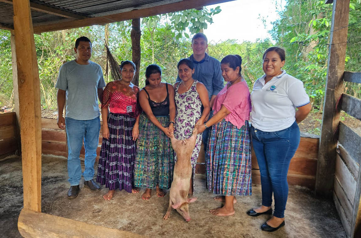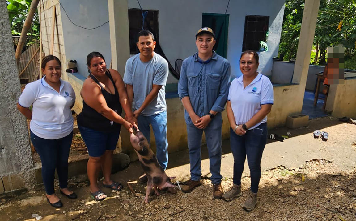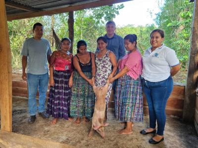 Se entregaron aves criollas mejoradas y cerdos a 40 familias de las comunidades Santa Cruz, Eben-Ezer y San Juan de Dios, de San Francisco, Petén, para fortalecer los sistemas productivos y contribuir a la seguridad alimentaria de las familias rurales.