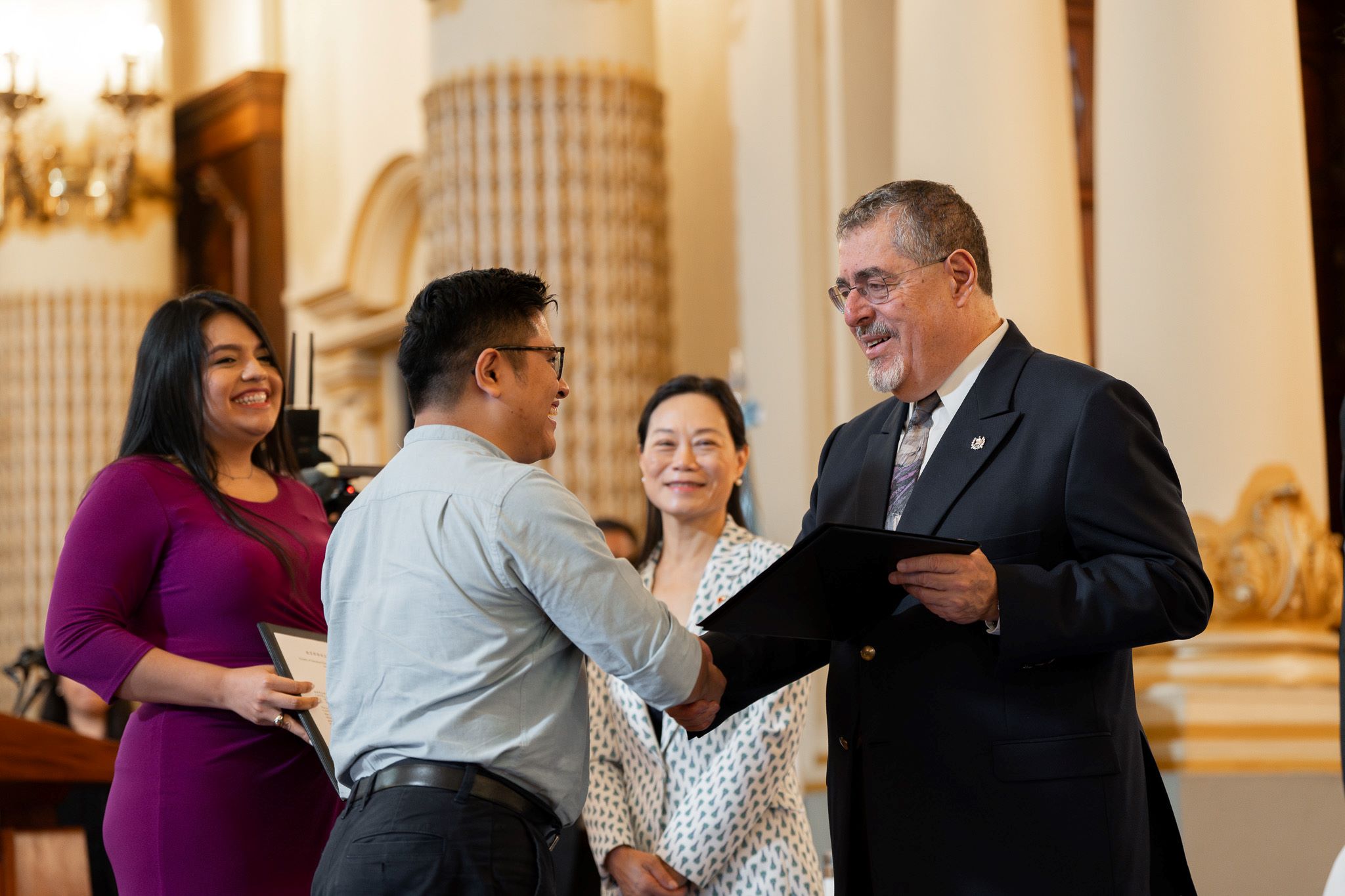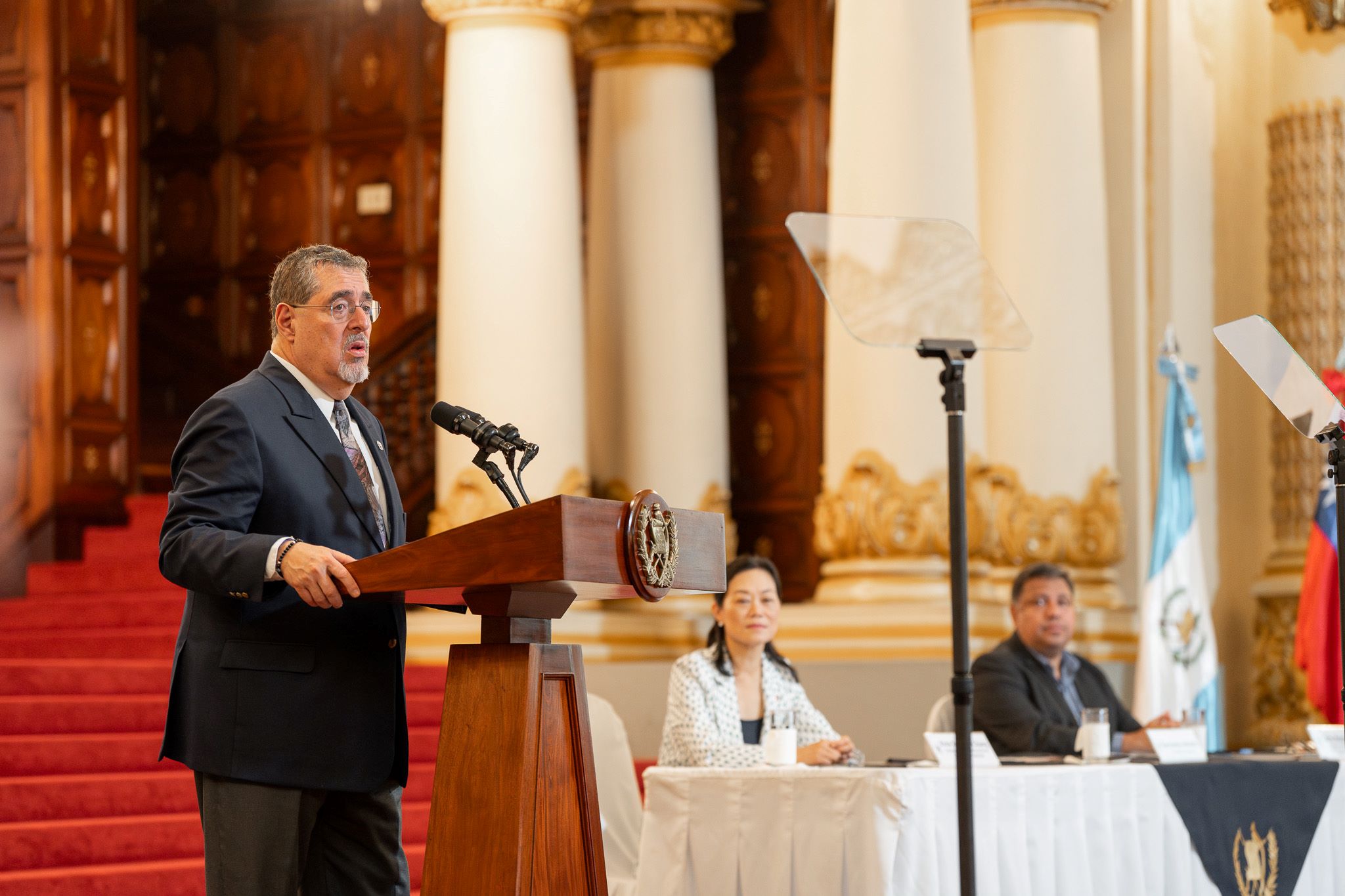 La entrega se efectuó en el Palacio Nacional de la Cultura en un evento protocolario encabezado por el presidente Bernardo Arévalo, quien estuvo acompañado por el Secretario de Planificación de la Presidencia, Carlos Mendoza, y la embajadora de la República de China (Taiwán) acreditada en Guatemala, Vivia Chun-Fei Chang.