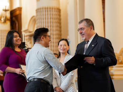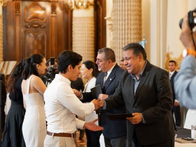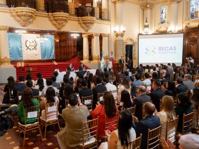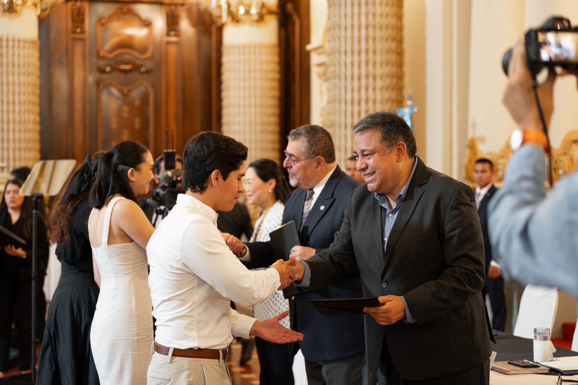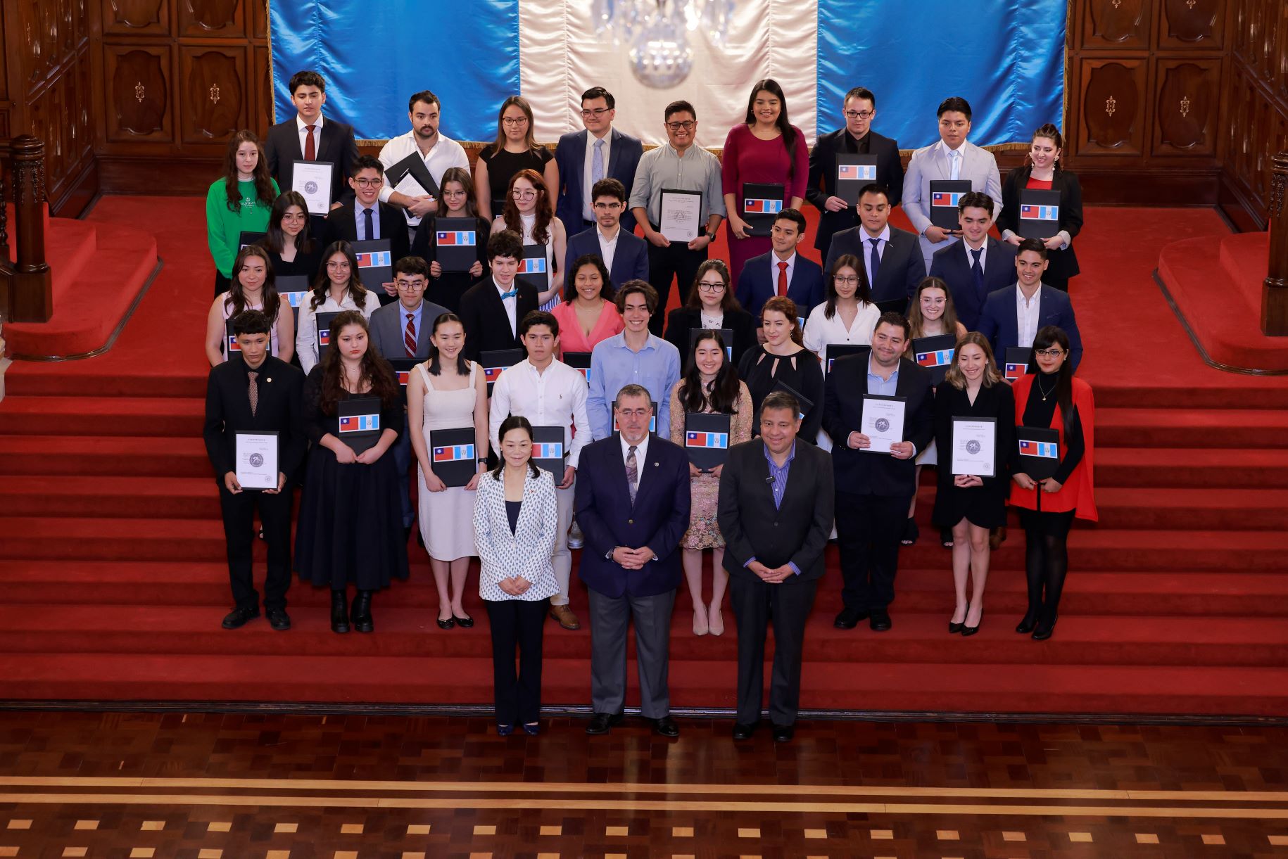 Guatemala, 23 de agosto de 2024. Jóvenes guatemaltecos participaron en la entrega simbólica de 39 becas para cursar sus estudios de licenciatura, maestría, doctorado y del idioma chino mandarín en la República de China (Taiwán), resultado de la cooperación entre ese país y Guatemala.
