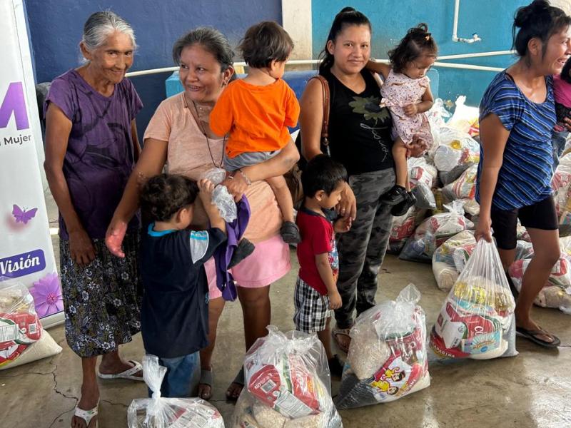 Cada familia recibe una ración compuesta por alimentos básicos como arroz, maíz o harina de maíz nixtamalizada, frijol, aceite vegetal, avena, azúcar y una mezcla fortificada de harina de maíz y soya, productos que contribuyen a complementar la dieta del hogar.