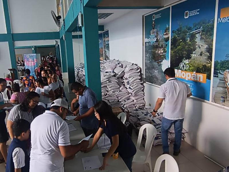 En Melchor de Mencos, 290 beneficiarios recibieron dos bolsas de semilla de maíz de 10 libras cada una y una bolsa de semilla de ayote por familia, las cuales contribuirán a incrementar la disponibilidad de granos básicos y a diversificar la alimentación a través del cultivo de maíz y ayote.