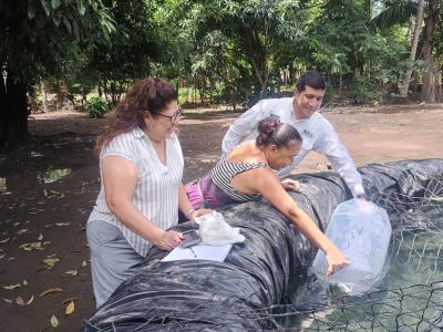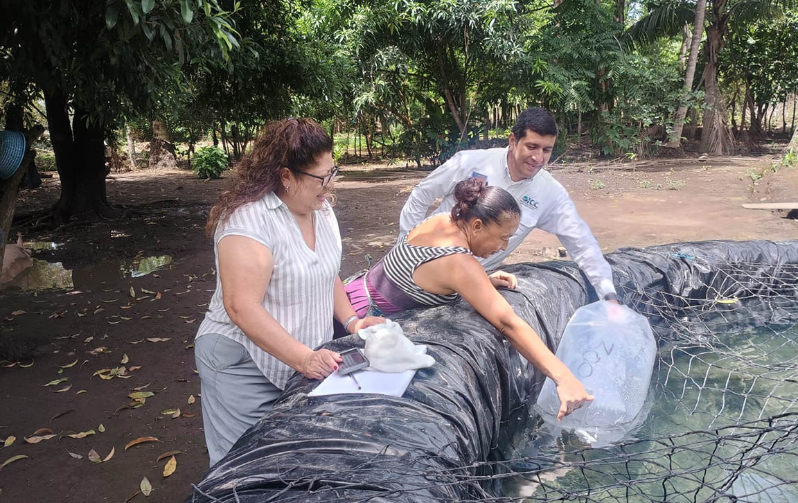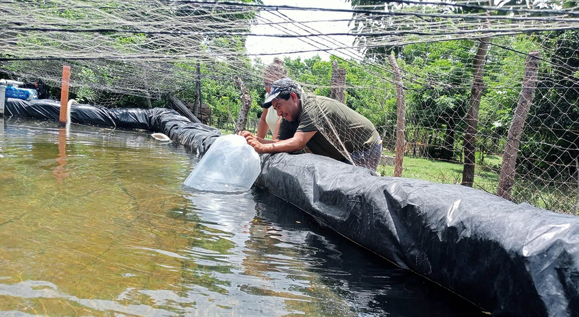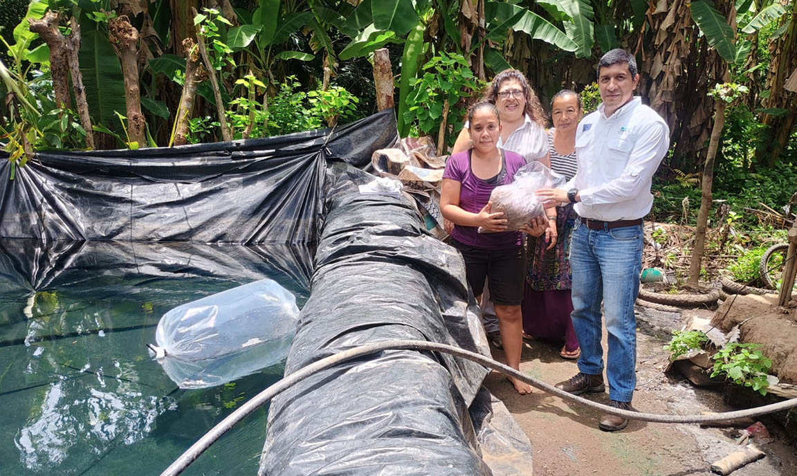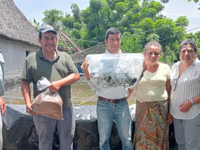 En seguimiento y apoyo a un proyecto de cultivo de tilapias en el parcelamiento Los Ángeles, comunidad El Satélite del municipio de San José, Escuintla, fueron entregados a mujeres rurales que lideran sus grupos familiares, dos mil alevines de tilapia de engorde.