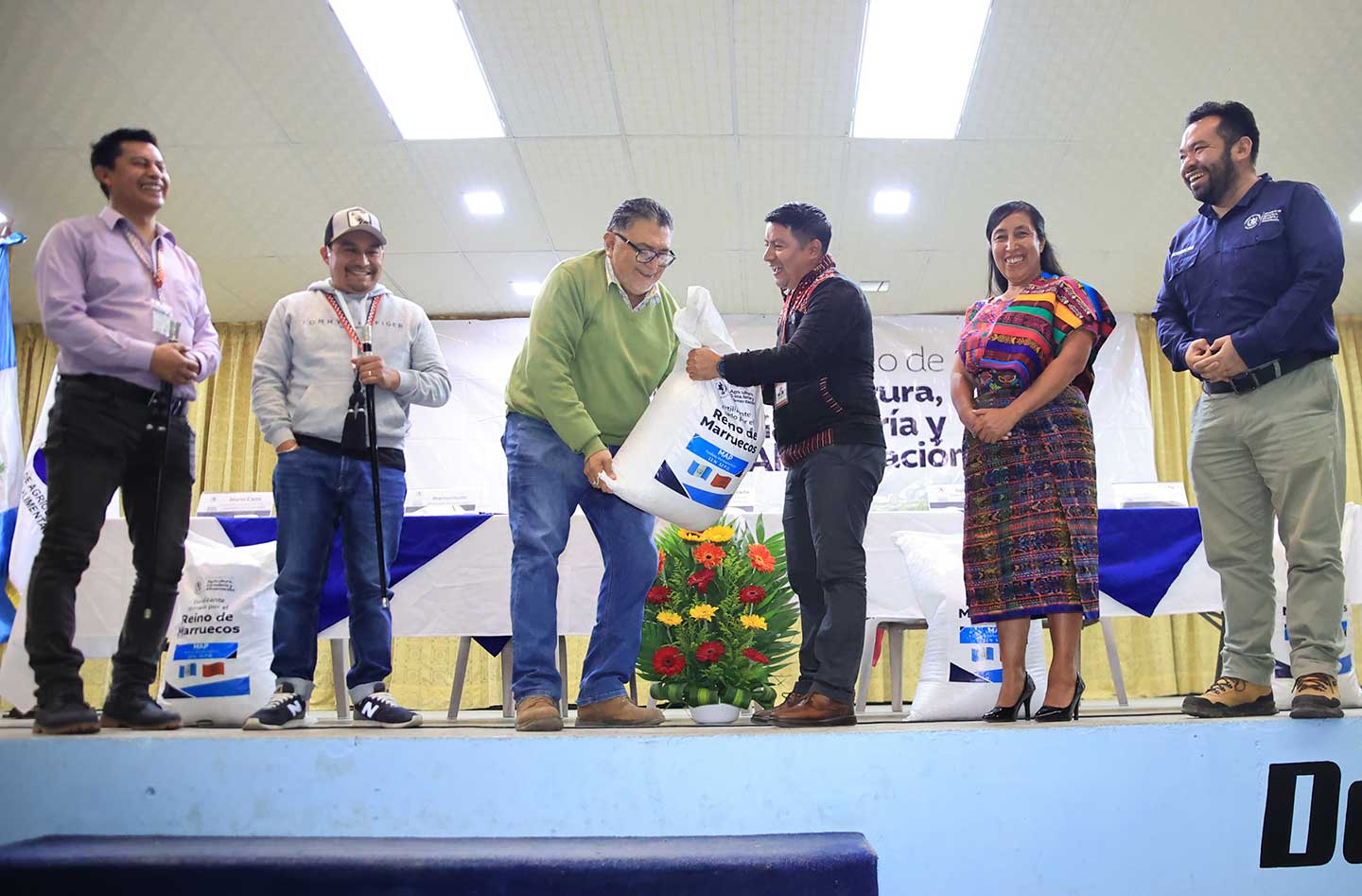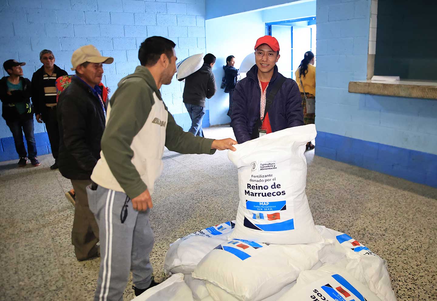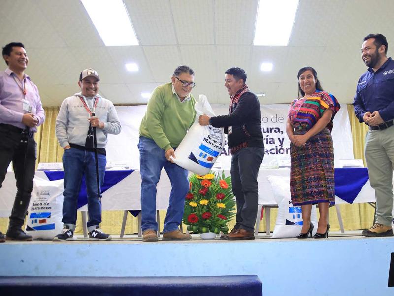 Con el objetivo de apoyar la producción agrícola de la región, las y los agricultores de diversas comunidades de Totonicapán recibieron fertilizantes provenientes de la donación realizada por el gobierno del Reino de Marruecos.