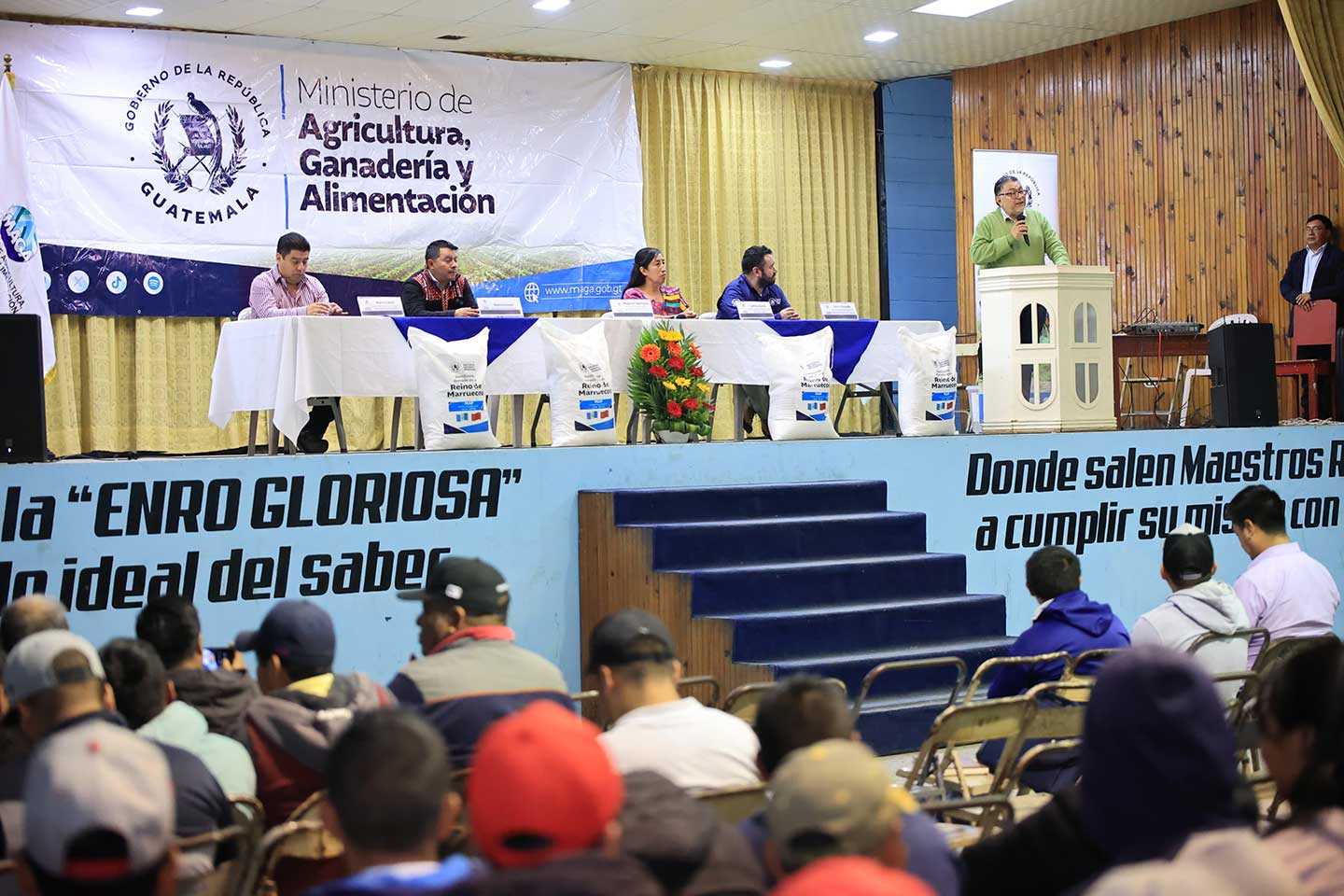 La gobernadora García indicó: “Conocemos las necesidades de nuestras comunidades, se lograron estos sacos de fertilizantes gracias a la gestión del MAGA y a la generosidad del Gobierno de Marruecos, que donó este fertilizante”.