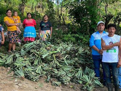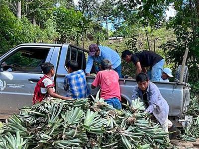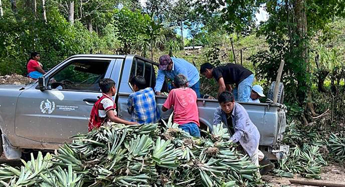 El personal de la Dirección de Desarrollo Agropecuario (DAGRO) entregó 1,000 hijuelos de piña en la comunidad de Nueva Armenia, Melchor de Mencos, Petén. Este material vegetativo tiene como objetivo mejorar la producción de frutas en las comunidades de la zona de adyacencia, para una mejor alimentación y mejoras en la economía.