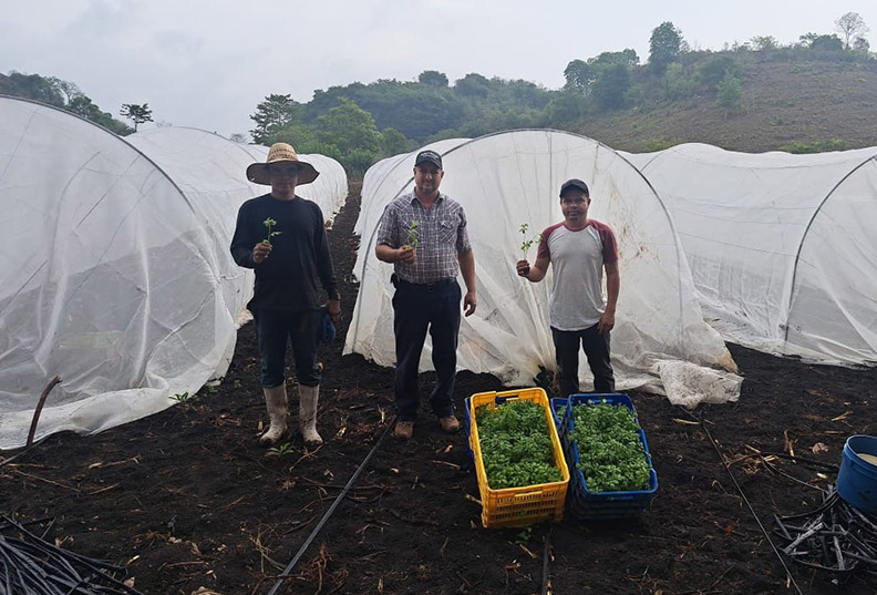 Productores y productoras de la comunidad Nueva Unión, del municipio de Dolores, Petén, fueron beneficiados con la entrega de 11 mil pilones diferentes hortalizas, entre ellas chile serrano, chile chocolate, chile chiltepe, chile pimiento, chile jalapeño y tomate P52, que les permite fortalecer su seguridad alimentaria.