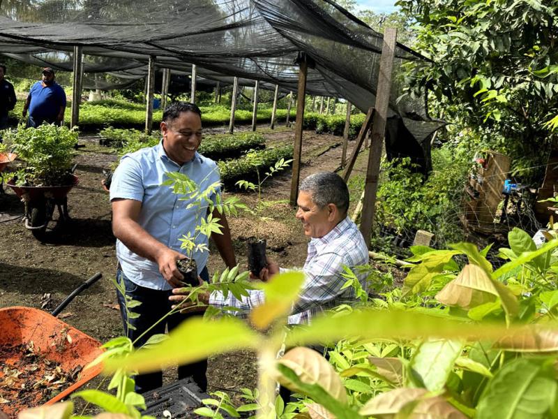 El funcionario, junto al equipo técnico y profesional, entregó personalmente 100 plantas forestales a un productor, además de supervisar el estado del vivero, en el cual se cultivan especies forestales destinadas a la recuperación de áreas degradadas.