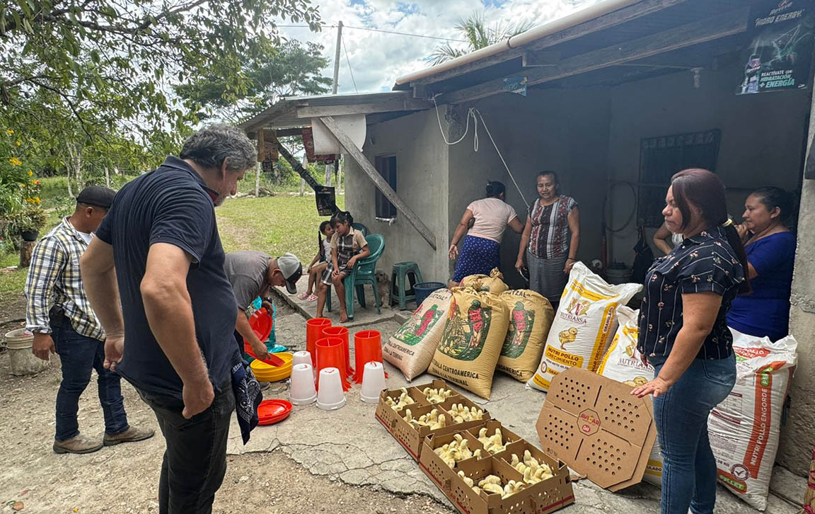 Entregan pollos de engorde a familias de Melchor de Mencos